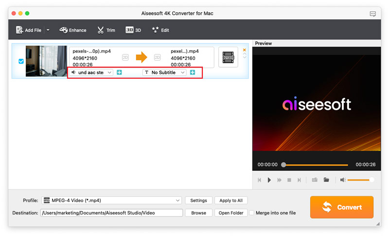 Como el convertidor de video 4K más profesional y multifuncional en Mac, este programa le permite convertir y editar videos 4K con facilidad. Le diremos cómo usar Aiseesoft 4K Converter siguiendo tres partes:
