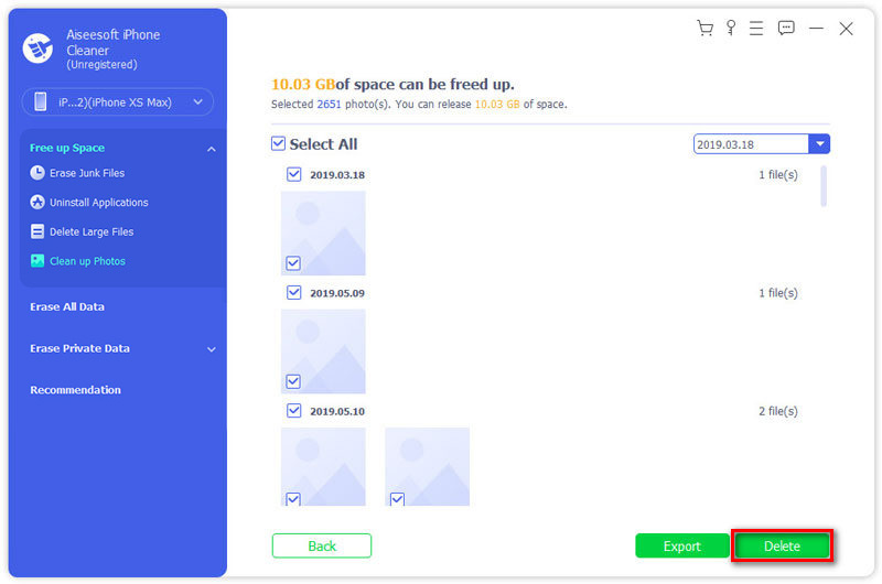 iPhone Cleaner Aiseesoft es una de las herramientas más populares para limpiar el carrete de la cámara de tu iPhone. Con esta herramienta, puede revisar todas las fotos que conserva y decidir eliminar aquellas fotos que no desea. Si no desea eliminarlos, esta herramienta también ofrece otra solución: comprimir el tamaño de la imagen, para ayudarlo a liberar más espacio en su dispositivo.