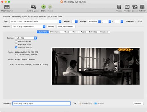 Handbrake es un popular programa gratuito para convertir videos a sus videos deseados, películas para reproducir en su iPhone, iPad, iPod touch y Apple TV. Puede seguir los pasos generales para convertir películas para reproducirlas en su iPad.