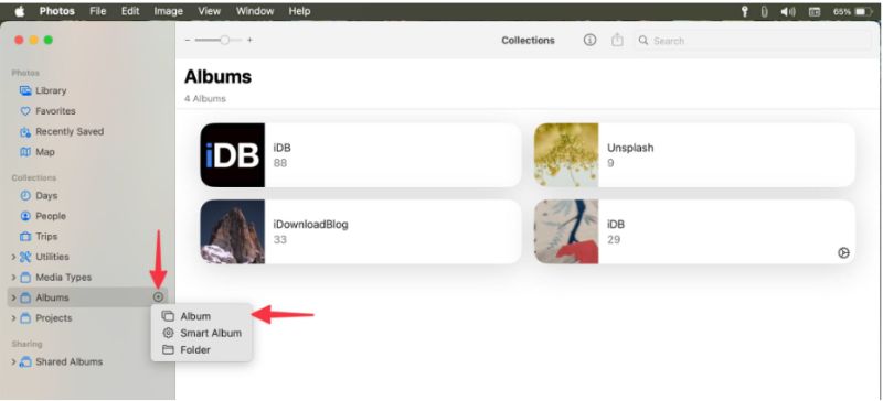 Desde allí, comprueba si los álbumes compartidos aparecen en el panel lateral. (Nota: Es posible que no veas los álbumes compartidos si la función no estaba activada previamente).