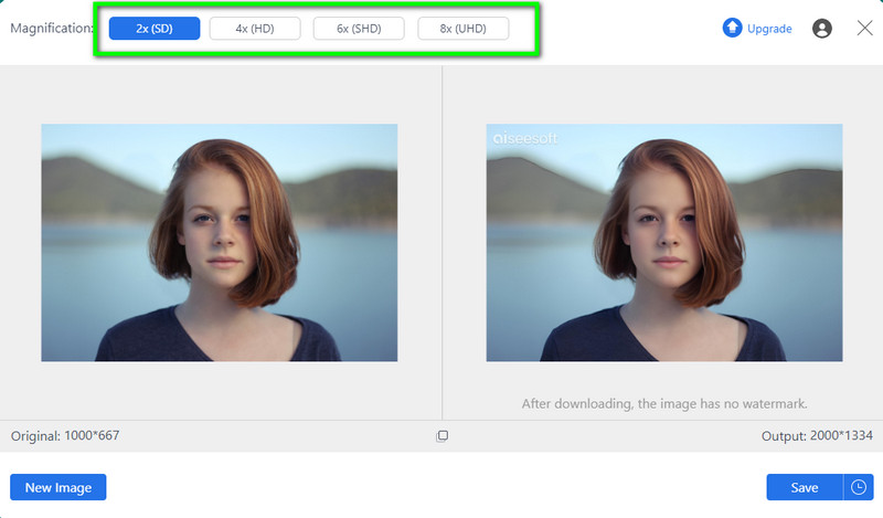 Antes de cambiar la pantalla de bloqueo en iPhone iOS 17, debe aumentar la resolución de la imagen para resaltar sus detalles; eso es donde Aiseesoft Image Upscaler en línea entra. Es un escalador en línea que permite a los usuarios mejorar la resolución de la imagen fácilmente. No es necesario descargar la aplicación porque puedes acceder a ella en línea. Siga el tutorial que hemos agregado aquí para usar la aplicación.
