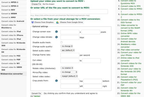 Si solo necesita convertir un video FLV a MOV y no le importa la calidad del video de salida, entonces puede elegir un convertidor de video en línea para resolver el problema. Aquí hay 5 convertidores de video FLV a MOV representativos que puede tomar.