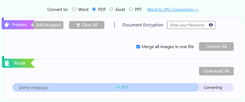 En caso de que esté convirtiendo otros formatos de archivo como JPG y Word, también hay una herramienta efectiva que podemos recomendar. Eso es Aiseesoft Free JPG Word Converter en línea. Asimismo, puede utilizar la herramienta en línea para trabajar con sus archivos desde la página web. Además, te permite convertir archivos de forma masiva.