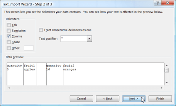 Paso 4 Luego marque la casilla de Coma y haga clic en Siguiente nuevamente.