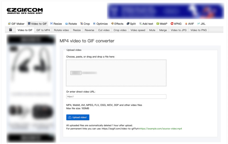 Parte 2. Cambie WebM a GIF animados con Ezgif Online