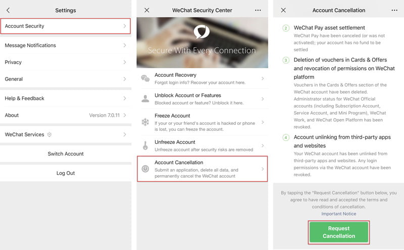 Con todo, presentamos todo el tutorial para eliminar cuenta de WeChat en iPhone. Además de eliminar con el servicio de cancelación de cuenta de WeChat, también puede usar FoneEraser para deshacerse de la cuenta y los datos de WeChat en el iPhone. Va a eliminar todos los datos y configuraciones en iPhone, así que asegúrese de hacer una copia de seguridad de los datos importantes en el iPhone.