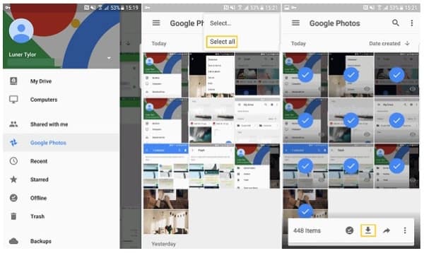 Sin embargo, hay muchas preguntas sobre la descarga de fotos de Google Fotos de forma total o selectiva. La pregunta más frecuente es cómo descargar todas las fotos de Google. Actualmente, Google Photos no admite la descarga de todas las fotos a la vez. ¿Hay alguna solución para descargar todas las fotos de Google Photos a su teléfono? Puedes obtener el tutorial completo aquí.