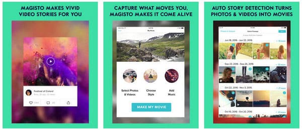 Magisto es una aplicación de edición de video para ayudarlo a crear una historia de video de aspecto profesional a partir de unas pocas fotos o un video. Puede cargar fácilmente fotos y videos desde su galería y agregar música al video para hacer un video musical increíble. También ofrece filtros de video, efectos y transiciones para la edición de video. Después de editar, puede compartir sus videos en Facebook, Google+, Twitter, etc.