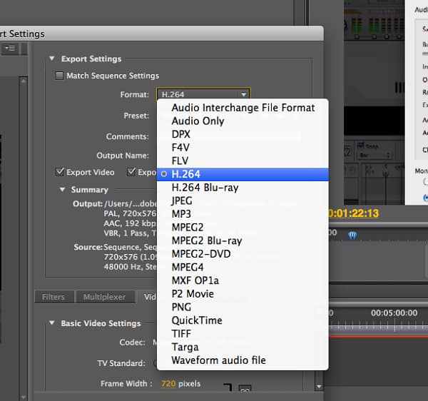 Paso 1 Vaya a la ventana Configuración de exportación en Premiere después de editar el video. Utiliza la relación de aspecto 16:10 para la mayoría de los videos.