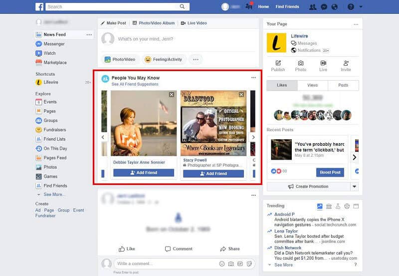 Facebook tiene la capacidad de recomendar amigos y seguidores potenciales en función de un algoritmo avanzado. Una vez que haga clic en el Gente que pueda conocer enlace, Facebook mostrará el círculo de amigos de sus contactos. Te da la opción de buscar personas en Facebook, que no están incluidas en tu lista de contactos.