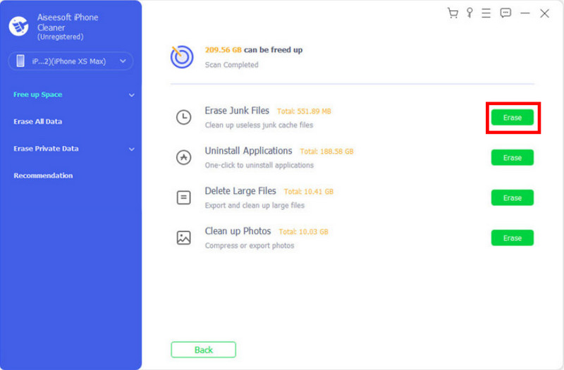 Aiseesoft iPhone Cleaner ofrece la opción Borrar todos los datos, que elimina todos los datos de su iPhone. Es una gran solución para limpiar el dispositivo y Acelera tu lento iPhone si lo vendes o lo regalas.