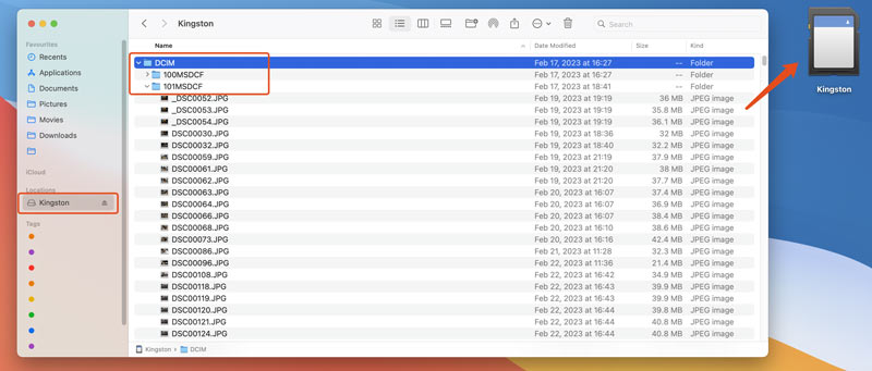 Si usas una Mac y quieres importar fotos desde una tarjeta SD, sigue los mismos pasos para establecer la conexión. Usa un lector de tarjetas USB si tu Mac no tiene ranura para tarjetas SD. La tarjeta insertada aparecerá en la sección "Ubicaciones" de la barra lateral izquierda del Finder. Selecciona todas las fotos que quieras transferir y arrástralas a la carpeta o ubicación deseada.