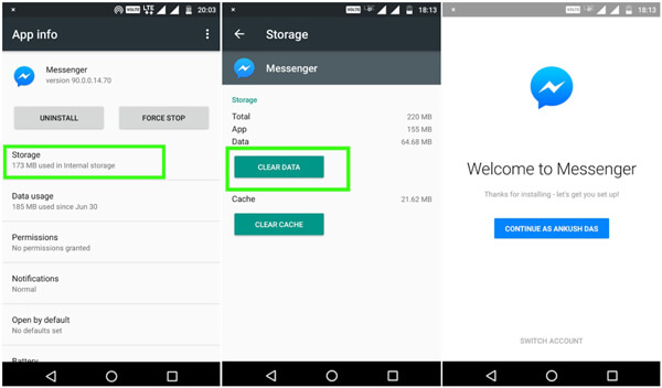 Paso 4Ahora debería observar dos opciones, "BORRAR DATOS" y "BORRAR CACHE". Simplemente haga clic en "BORRAR DATOS". Y se ha desconectado con éxito de la aplicación de mensajería de Facebook.