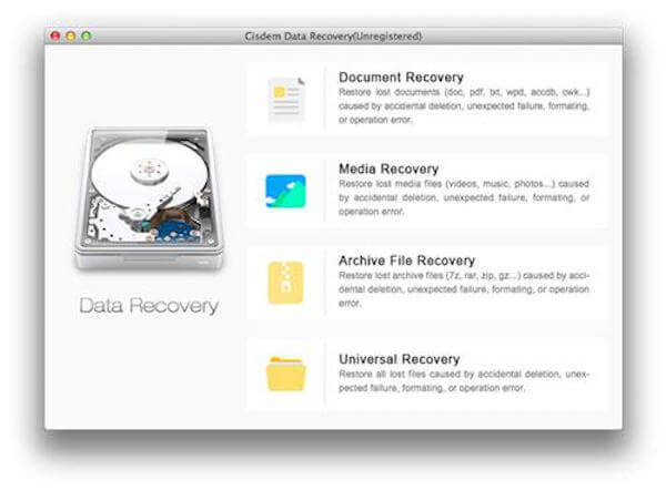 Aiseesoft Mac Data Recovery está especialmente diseñado para recuperar todo tipo de datos borrados/perdidos en su Macbook o iMac. Se admite cualquier tipo de datos de uso frecuente, como fotos, documentos, correos electrónicos, audio, videos y más. Puede buscar y restaurar archivos rápidamente desde el disco duro, la unidad flash, la tarjeta de memoria, la cámara digital, etc. en Mac.