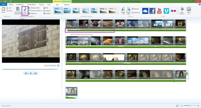 Si es un usuario de PC y quiere hacer un AMV en una computadora con Windows 10/8/7, también puede confiar en el software de edición de video predeterminado, Windows Movie Maker. Esta parte muestra detalles sobre cómo hacer un AMV con Windows Movie Maker.