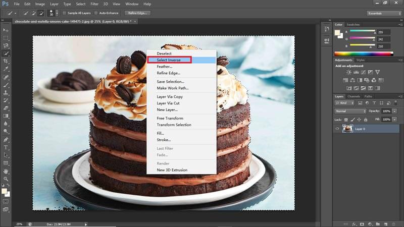 Después de eso, haga clic derecho en la selección y elija Selección inversa. Ahora, se seleccionará el fondo de la imagen.