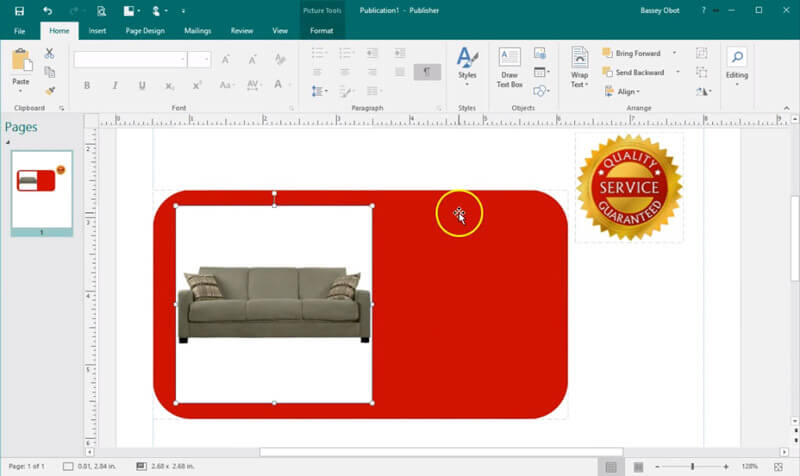 Importe la imagen a Publisher. Luego haga clic en la imagen que desea cambiar para seleccionarla.
