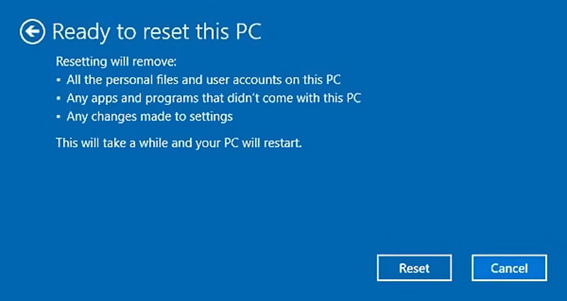 To access the Windows Settings on your Lenovo laptop, you can simply click the Start icon and then click the Settings gear icon. Go to Settings and choose Recovery. Hit Get started under Reset this PC and select either Keep my files or Remove everything based on your needs. Confirm your operation to force your Lenovo laptop to reboot to its factory settings.