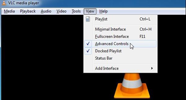 Paso 1 Inicie VLC, vaya al menú "Ver" en la cinta superior y seleccione "Controles avanzados". Ahora, puede ver más herramientas disponibles en la parte inferior del reproductor.