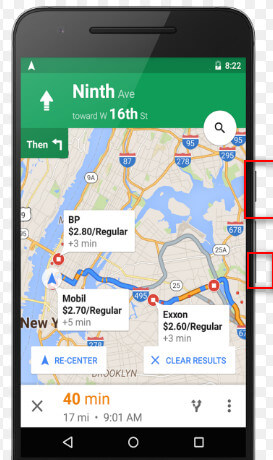 Al igual que iPhone, también puede combinar el botón en Android y comenzar a tomar la captura de pantalla para Google Maps.