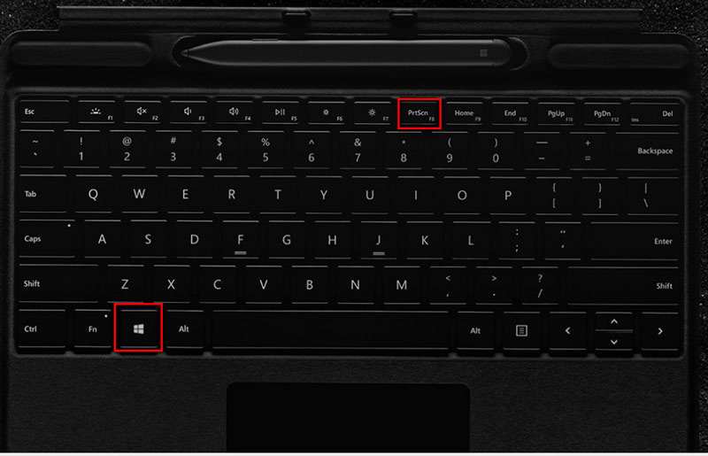 Si no puede encontrar la tecla PrtScn en Surface Pro, puede reemplazar las combinaciones de teclas de Fn + Windows + barra espaciadora tomar una captura de pantalla