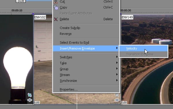 Nota: Tenga en cuenta que existen limitaciones para ralentizar o acelerar los videoclips. Puede acelerar un videoclip en Sony Vegas ProSony Vegas Pro hasta cuatro veces. En consecuencia, la velocidad máxima de cámara lenta es un cuarto de veces.