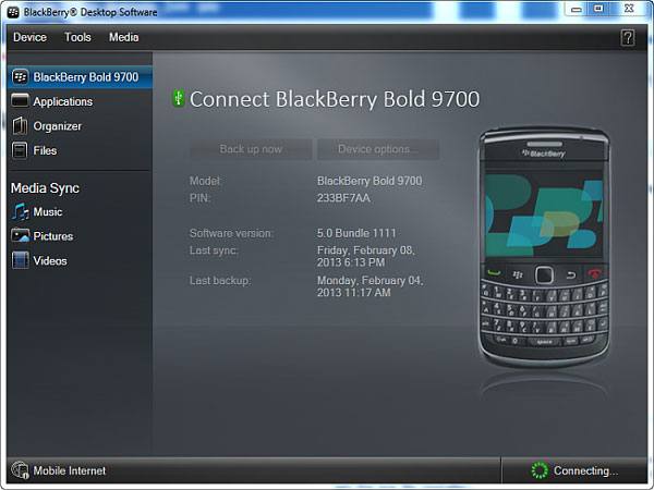 BlackBerry ha lanzado un programa de escritorio, llamado BlackBerry Desktop Software, para ayudar a las personas a administrar los datos. Está disponible para el sistema operativo Blackberry 7.1 y versiones anteriores. Es capaz de transferir datos a la computadora, como imágenes de música, videos y contactos.