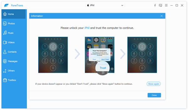 En la primera parte, nos gusta recomendar una herramienta de transferencia de datos de iOS fácil de usar, FoneTrans para que transfiera todo tipo de datos de iOS, incluidas fotos, videos, música, contactos, mensajes, notas, calendarios, Safari, libros electrónicos y registro de llamadas, entre iPhone/iPad/iPod y PC/Mac.
