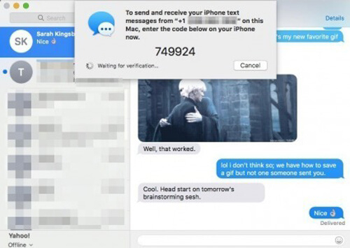 8Ingrese el código de verificación en el cuadro que apareció en su iPhone. Luego puede comenzar a transferir iMessages de iPhone a Mac.