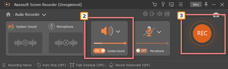 Adquirir el Aiseesoft Screen Recorder para comenzar a recortar música en TikTok con facilidad. Para uso profesional, la aplicación se puede usar cuando necesite grabar la acción jugada a jugada en su pantalla cómodamente con el audio del sistema y el audio del micrófono. Con las variaciones de grabación de esta aplicación, no hay duda de por qué se convirtió en la mejor aplicación para este problema. Primero debe grabar el audio o el sonido para usar la opción de recorte de audio de la aplicación. Si no sabe cómo hacerlo, siga los pasos que agregamos a continuación y asegúrese de seguirlos minuciosamente.