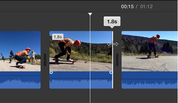 Paso 2 En la línea de tiempo, puede ver un control deslizante en cada extremo del video. Arrastre los controles deslizantes hacia la izquierda o hacia la derecha para cortar el video como desee.