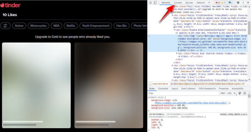 ¿Necesitas ayuda para ver Who Likes You porque está borroso? Bueno, no hay necesidad de que te preocupes porque puedes desenfocar los Me gusta de Tinder cambiando los códigos de su script antes de decidir a quién le gusta o no. Este método no es el más fácil de usar porque necesitará modificar algunos códigos incrustados en Tinder para ver el perfil de la persona en lugar de comprar una membresía dorada. Sin embargo, este método solo funciona con dispositivos seleccionados, pero si actualmente está utilizando una computadora de escritorio, eso debería funcionar. Estos son los pasos que puede seguir para enseñarle cómo funciona este método.