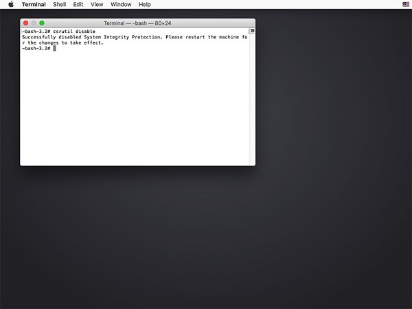 Nota: Para habilitar SIP más tarde, regrese al modo de recuperación y ejecute el comando permitir csrutil.