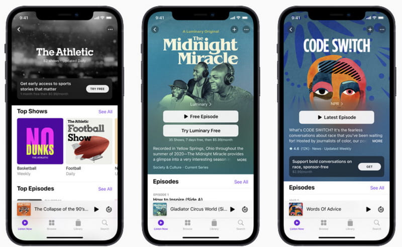 Otra plataforma gigante donde puedes escuchar podcasts es la Podcast de manzana. Esta aplicación está dedicada a los oyentes y creadores de podcasts, por lo que si desea saber cómo cargar el podcast en Apple Podcast, este es el tutorial que deberá seguir.