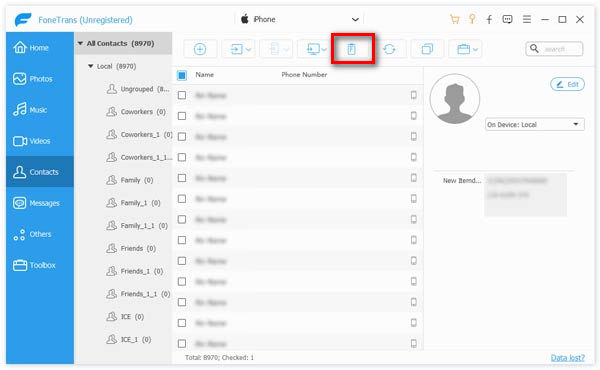 Paso 3 Para eliminar varios contactos en iPhone, debe repetir los dos pasos anteriores para eliminar contactos masivos de iPhone.