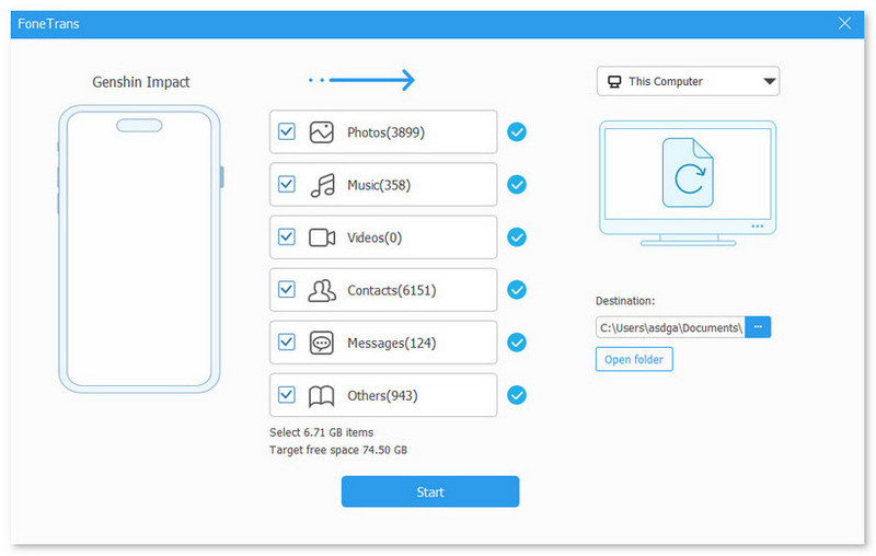 Paso 1 Descarga e instala FoneTrans en tu computadora. Conecte su dispositivo con la computadora mediante un cable USB.