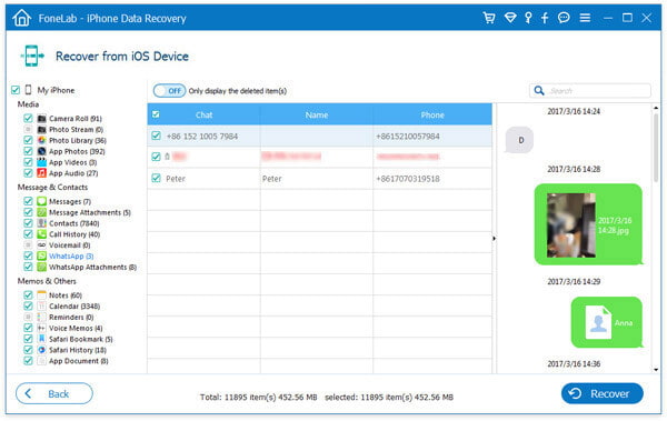 Presione el botón de imagen "Iniciar escaneo" para escanear el iPhone en busca de datos eliminados. Luego, todos sus archivos eliminados, junto con los datos existentes, se mostrarán en cada categoría.