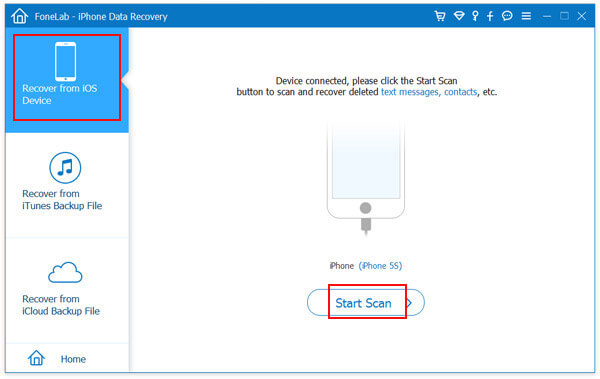 Haga clic enIniciar escaneadoy deja que FoneLab iPhone Data Recovery escanee los archivos de tu iPhone. Durante el proceso de escaneo, asegúrate de que tu iPhone o iPad esté siempre conectado.