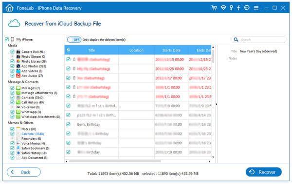 Puede usar este software para recuperar otros datos eliminados. Como recuperar iPhone MMS eliminado haciendo clic en "mensajes" y "Adjuntos de mensajes". Además, la recuperación de datos del iPad o la restauración de archivos del iPod están disponibles. Para asegurarse de que la recuperación del calendario sea exitosa, no debe agregar ni eliminar datos en su dispositivo después de eliminar el calendario.