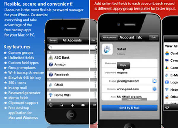 Administrador de contraseñas de iAccounts puede almacenar todas sus contraseñas, inicios de sesión del sitio web, detalles de la cuenta, PIN y más detalles en el dispositivo Android. Además, iAccounts, el mejor administrador de contraseñas, puede proteger todos sus datos de forma segura con un cifrado de primer nivel.