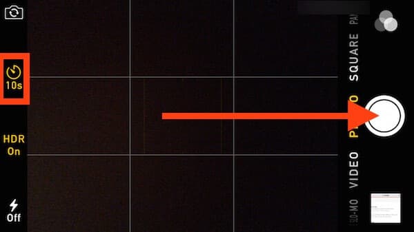 Paso 4Toque el botón "Obturador" y la aplicación Cámara iniciará la función de temporizador automático antes de que se tome la foto en lugar de tomar fotos inmediatamente como de costumbre. Deberías notar que la luz intermitente brilla. Cuando se acabe el tiempo, se tomará la fotografía. iPhone proporciona automáticamente modo ráfaga de cámara para ti y te permite tomar 10 fotos en este proceso.