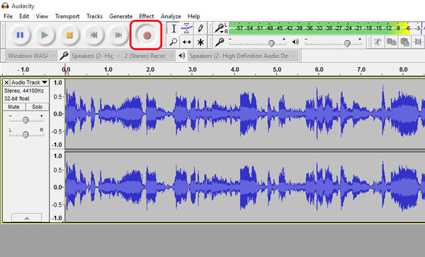 Paso 2 Haga clic en el botón de punto rojo "Grabar" y luego reproduzca su casete. Presiona el botón "Detener" cuando termine la reproducción de la platina de casete.