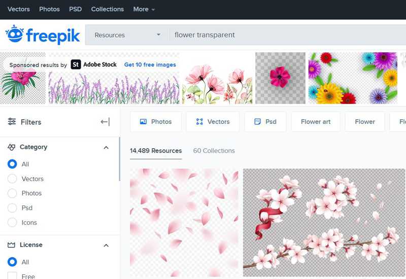 Freepik es un sitio web que proporciona fotos de alta calidad, incluyendo flor fondos transparentes en formato PNG. Tiene una interfaz sencilla que ayuda a encontrar lo que necesita. Cuando haces clic en una imagen, te sugerirá muchas fotos relacionadas que tal vez quieras descargar. Freepik también tiene una versión premium para obtener imágenes más hermosas para incluir en un proyecto.