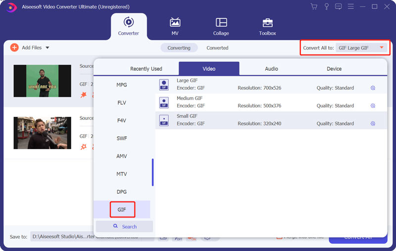 Puede optar por eliminar el fondo no deseado de su archivo GIF a través de la forma de recorte. Video Converter Ultimate es una herramienta de edición y conversión con todas las funciones que le permite recortar archivos de video y GIF con facilidad. Para la edición de GIF, también le permite recortar GIF, rotar GIF, cambiar el tamaño de GIF, ajustar los efectos de GIF, agregar una marca de agua a GIF, personalizar la resolución de GIF, la velocidad de fotogramas, el modo de zoom, la animación en bucle y más. Puede descargarlo gratis y seguir los pasos a continuación para recortar su fondo GIF.