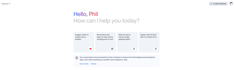 Gemini se utiliza principalmente en países de habla inglesa. Si ingresa otros idiomas como el chino, es posible que obtenga respuestas que no sean tan correctas, como el inglés. Gemini aún está en desarrollo y tiene límites de idioma, ubicación y compatibilidad de dispositivos. Para la generación de imágenes y otras funciones, también tiene algunas limitaciones. Gemini ofrece una versión básica gratuita para que puedas acceder a sus funciones básicas. Sin embargo, para generar resultados más detallados y de alta calidad, es posible que deba actualizar a Gemini Advanced.