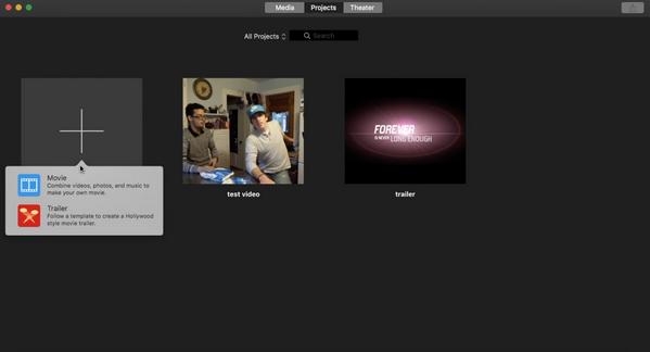 1. Abra iMovie, haga clic en el botón "Crear" y aquí puede elegir crear una película o un tráiler de iMovie.