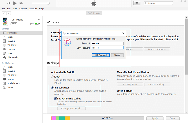 Solo dos pasos simples y puede hacer una copia de seguridad de los datos de su iPhone en iTunes en caso de pérdida de datos. Después de hacer eso, puede asegurarse de la seguridad de los archivos de respaldo.