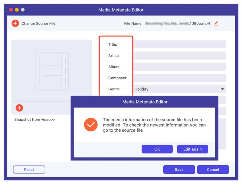 Whether you want to edit metadata information of MP4 videos on a Mac or Windows PC, you can rely on the easy-to-use Aiseesoft Video Converter Ultimate. This all-featured video editing and conversion tool has a specially designed Media Metadata Editor for you to easily edit various tag information of both video and audio files. It offers a simple way to add, edit, or remove various tags, including the file name, genre, year, artist, album, cover, composer, track, comments, and description. Download this metadata editor on your Mac or PC and follow the steps below to edit MP4 metadata with ease.