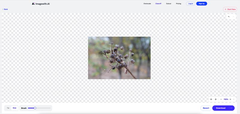 Imagwith.AI es otra plataforma basada en web que se utiliza principalmente para la edición de fotografías con IA. Ofrece una página específica de eliminación de objetos de IA para que puedas eliminar fácilmente objetos de las fotos. Utiliza algoritmos de IA avanzados para identificar y eliminar con precisión varios objetos no deseados, como marcas de agua, defectos y más. Ofrece dos formas de eliminar objetos de tus fotos. Puedes tocar directamente el área no deseada o dibujar con su pincel. Imagwith.AI le permite exportar su imagen editada en JPG, PNG o WebM.