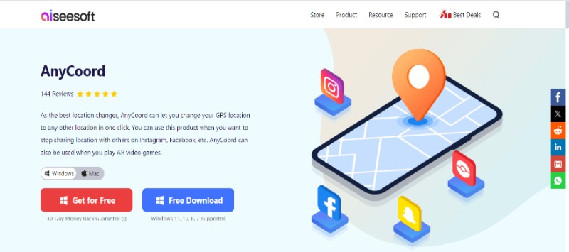 Aiseesoft AnyCoord es la mejor herramienta de simulación de GPS para Pokémon GO en Android que puede cambiar la ubicación en teléfonos Android e iOS. Ofrece actualizaciones en tiempo real y ayuda a los usuarios a simular rutas sin rootear sus dispositivos.